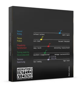 (Hecho en Austria) Esta cuerda de material híbrido ofrece un sonido cálido y redondo, mantiene el tono de la tensión y flexibilidad de una cuerda dominante. Además ofrece la característica de poderse combinar individualmente con Infeld-azul según se requiera.
