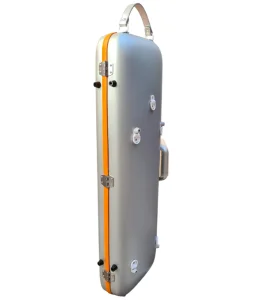 Estuche para violín rectangular, peso 2kg, higrómetro digital, espacio para 4 arcos, 2 correas con aro de seguridad.