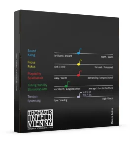 (hecho en Austria) Cuerda con alma sintetico. Tiene un sonido de tono puro y concentrado, de gran proyección, elegido por los solistas.