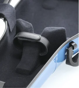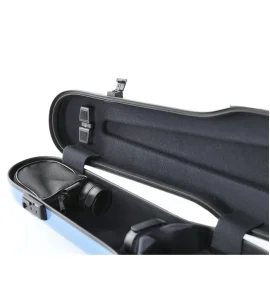 Estuche en fibra de carbono de alta calidad, disponible en forma de violín y rectangular. El modelo rectangular es el único que incluye bolsa exterior para partituras. Correas muy cómodas de alta calidad. Asa lateral y asa superior (subway handle)