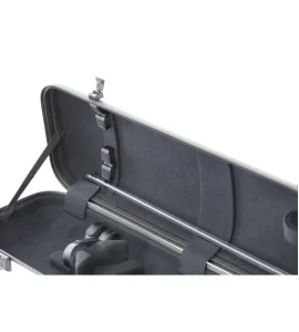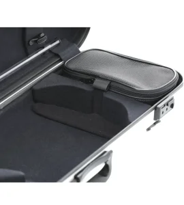 Estuche en fibra de carbono de alta calidad, disponible en forma de violín y rectangular. El modelo rectangular es el único que incluye bolsa exterior para partituras. Correas muy cómodas de alta calidad. Asa lateral y asa superior (subway handle)