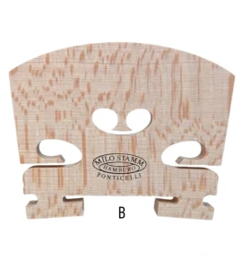Hecho en Alemania, puentes fabricados con madera selecta de arce de la mas alta densidad, rajada al hilo y tratada. Los puentes Milo están disponibles en diferentes versiones, corazón estándar, alto y bajo, con rango en abertura de patas. Calidad ROYAL, PREMIUM, STANDARD