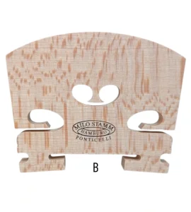 Hecho en Alemania, puentes fabricados con madera selecta de arce de la mas alta densidad, rajada al hilo y tratada. Los puentes Milo están disponibles en diferentes versiones, corazón estándar, alto y bajo, con rango en abertura de patas. Calidad ROYAL, PREMIUM, STANDARD