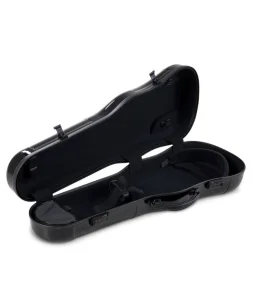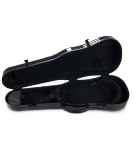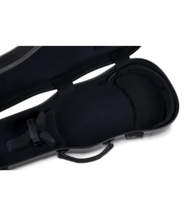 Estuche en fibra de carbono de alta calidad, disponible en forma de violín y rectangular. El modelo rectangular es el único que incluye bolsa exterior para partituras. Correas muy cómodas de alta calidad. Asa lateral y asa superior (subway handle)