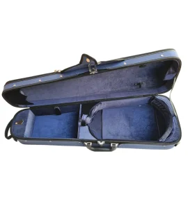 Estuche rigido para viola con casco de aglomerado y exterior impermeable, espacio para partituras, espacio para dos arcos, correas para colgarse como mochila. Dispoible en dos medidas: para viola hasta 42cm, para viola hasta 40cm