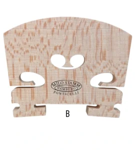 Hecho en Alemania, puentes fabricados con madera selecta de arce de la mas alta densidad, rajada al hilo y tratada. Los puentes Milo están disponibles en diferentes versiones, corazón estándar, alto y bajo, con rango en abertura de patas. Calidad ROYAL, PREMIUM, STANDARD